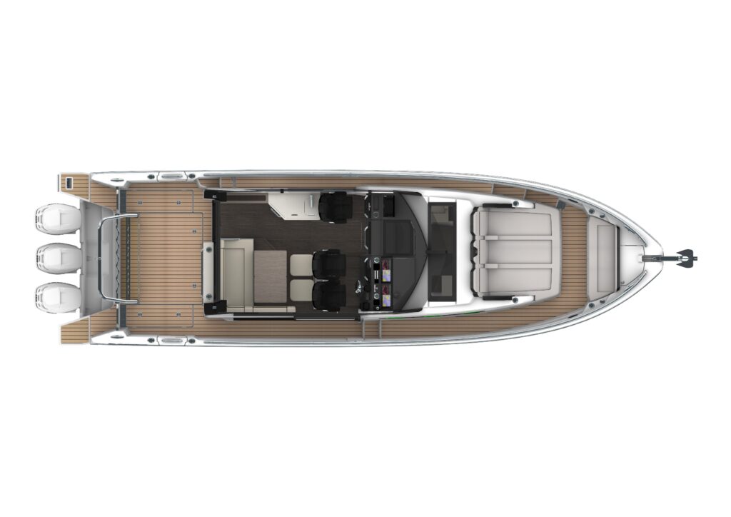 Angetrieben von leistungsstarken Außenbordmotoren (bis zu 900 PS Gesamtleistung) gleitet die Wellcraft 38 Explorer souverän über jede See. Das tiefe V-Rumpfdesign sorgt für hervorragende Stabilität und Kontrolle, auch bei anspruchsvollen Bedingungen.